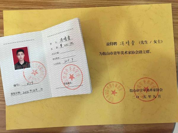 【2015-12-18】 美术学院2015届本科毕业生冯靖壹被聘为鞍山市青年美术家协会副主席