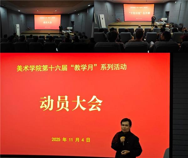 为深入贯彻新时代高等教育高质量发展理念,进一步提升学院青年教师的教学能力与育人实效,2025年11月4日下午,美术学院在超真楼B501报告厅成功举办第十六届“教学月”动员大会暨“十佳百优”公开课活动。活动由副院长韩吉安主持,学院45岁以下青年教师及部分中年骨干教师参加。