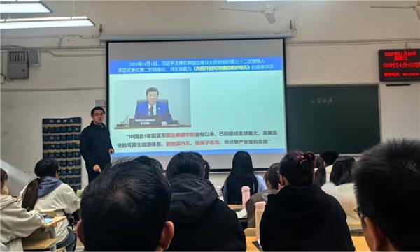 在本次公开课活动中,贾玉帅老师讲授了《物理化学》课程中化学电源相关知识。贾老师以习近平总书记2025年11月在亚太经合组织会议上发表的重要讲话为切入点,回顾了我国“双碳”目标提出的背景和重大意义。从如何实现“双碳”目标的角度出发,引出绿色可再生能源驱动的二次电池的发展现状。以2019年诺贝尔化学奖为背景,重点讲解了锂离子电池的发展历程、工作机理、研究现况、面临的挑战以及未来的发展方向。贾老师鼓励同学们怀揣梦想,刻苦学习,勇攀高峰,为实现国家“双碳”目标贡献自己的力量。