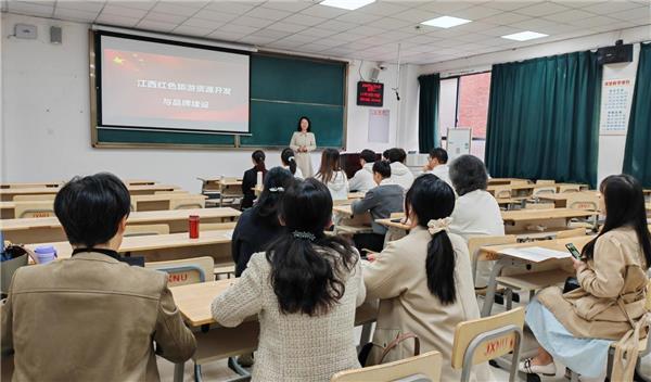 2025年11月4日,上午第五节课,历史文化与旅游学院万剑敏老师在惟义楼W3208教室进行了课程思政教学创新公开教学。授课课程为《红色研学产品开发与服务》,对象为23级旅游管理班的学生,石嘉副院长和旅游管理专业7位教师观摩了公开课。