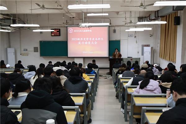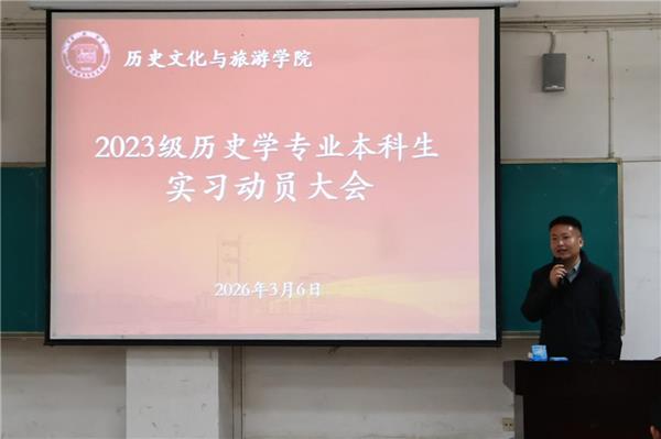 为切实做好2023级历史学学生实习安排工作,明确实习任务与纪律要求,保障实习研习工作有序开展,3月6日下午,历史文化与旅游学院在惟义楼W7104召开2023级历史专业本科生实习动员大会。全体指导老师和实习本科生参会,会议由系主任吴方浪主持。