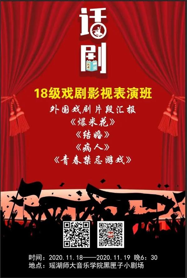 本学期的秋季戏剧周于11月15--19日在瑶湖校区音乐学院黑匣子剧场举行,一如既往地受到众多观众好评,吸引了很多特意从外地赶到南昌来观看戏剧演出的观众。11月15日、16日——2019级戏剧影视表演班《中国当代文学作品改编片段汇报》;11月18、19日——2018级戏剧影视表演班《外国戏剧片段汇报》。完成汇报的18级、19级表演班,在演出前,现场线上座位也早早地被学院师生一抢而空,观众观赏积极性极高,每一场125个座位全部满座,演出后得到了观众一致的好评,甚至演出结束观众迟迟不肯离开现场。