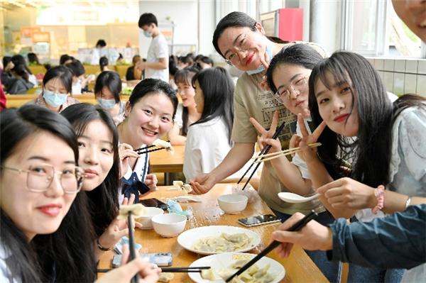 5月27日下午,在学院统一组织安排下,学院领导和辅导员带领150名学生在二食堂二楼开展了其乐融融的包饺子活动。首先为大家现场播放“中国农耕文化”主题宣传视频以及包饺子操作视频,供同学们进一步了解和学习农耕文化背后的含义及包饺子的诀窍和要领。接下来,同学们在手法娴熟的食堂阿姨们的指导下,从和面、擀皮、填馅儿、捏褶、成型,一步一步认真学习,积极参与,不断尝试,大胆创新,一双双巧手变出了各具地方特色的美味饺子。部分同学展示自己所包的饺子后分享了与饺子有关的传统文化小故事,活动现场气氛热烈,欢声笑语接连不断。大家不仅享受着劳动的乐趣,也深刻地体味到了中华农耕文化的丰富底蕴。