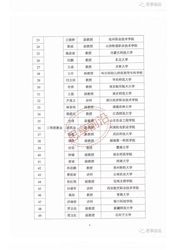 经组织推荐、考察遴选、专家会议评审、公示等程序,研究确定了奖励基金获奖名单,其中一等奖教金7名、二等奖教金12名、三等奖教金30名。